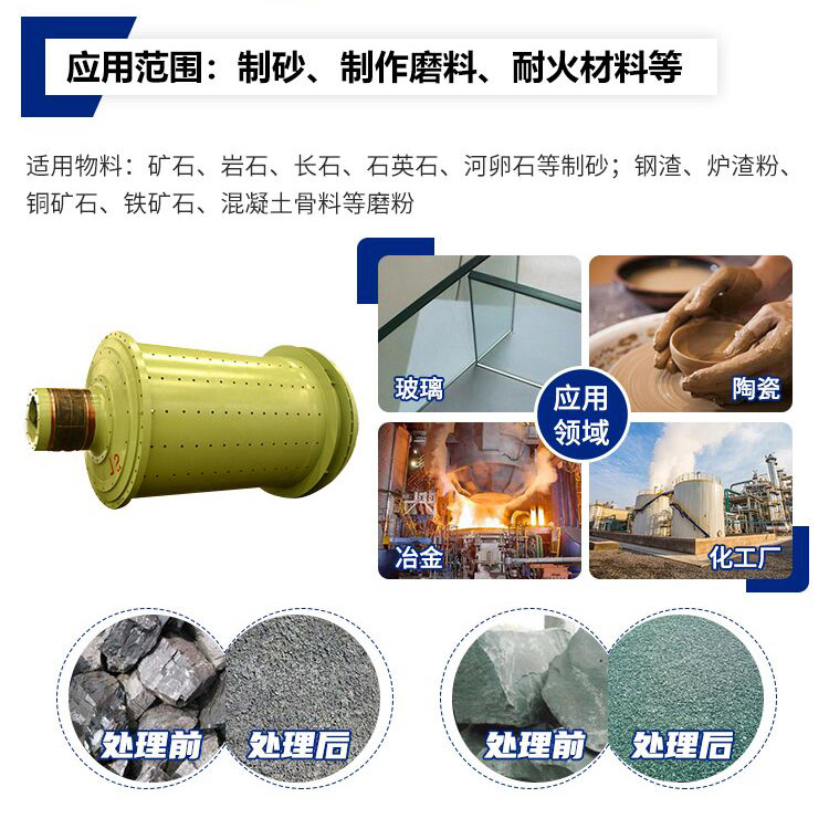 棒磨機(jī)廣泛用于金屬和非金屬礦山及水利.建材部門粉磨各種礦石或巖石。