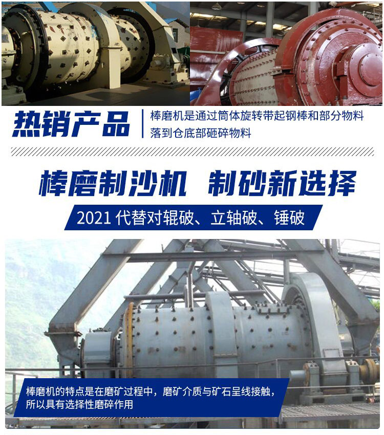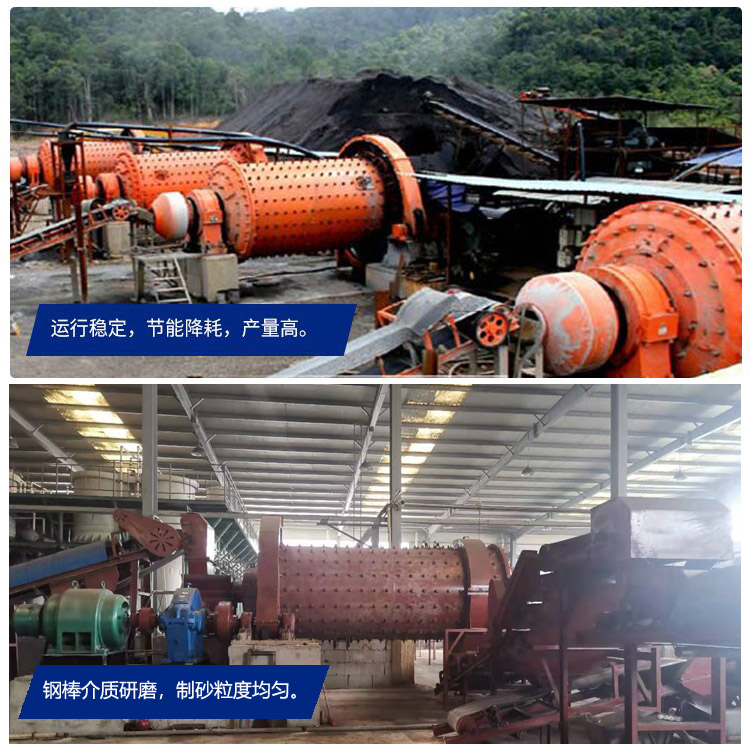 二、出料均勻產(chǎn)量高——采用先進(jìn)的可控進(jìn)出料棒磨機(jī)技術(shù),結(jié)合實際用戶的研磨物料配用合適的研磨體,一改傳統(tǒng)球磨機(jī)的面接觸為線接觸,使制砂機(jī)的出料粒度更為均勻、產(chǎn)量更高, 適用于不同硬度(莫氏硬度 5.5 ~ 12 )的礦石。
